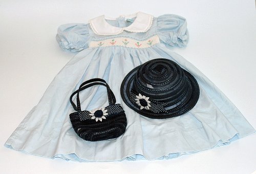 パーティドレス スモッキングドレス ブリオンフラワー/バッグ/ハットブルー90