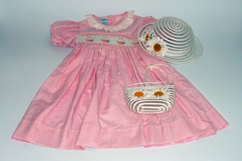 パーティドレス スモッキングドレス/ハット/バッグ フラワーバスケット90 ピンクストライプ