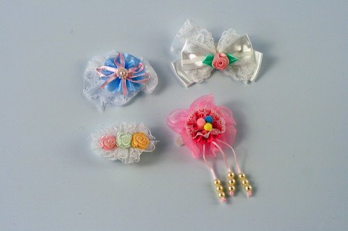 ヘアアクセサリー ヘアリボン 4個セット クリップタイプ ホームセット