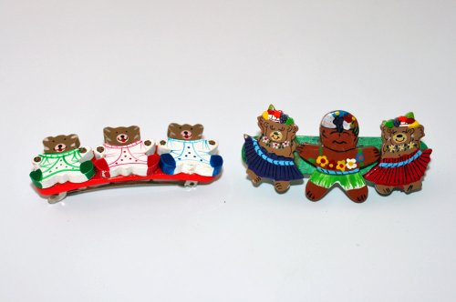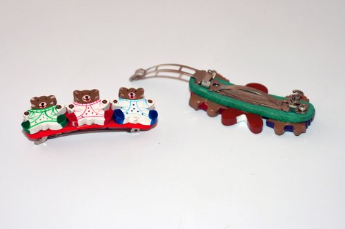 アクセサリー バレッタ ウッドビーズ ハワイアンベアズと三匹のくま 2個セット