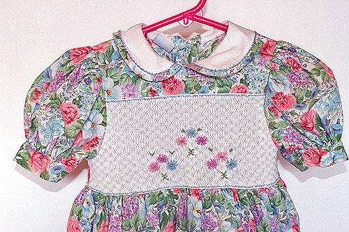 - 胸元は、ゴージャスなスモッキング刺繍