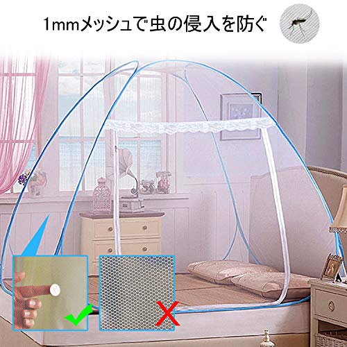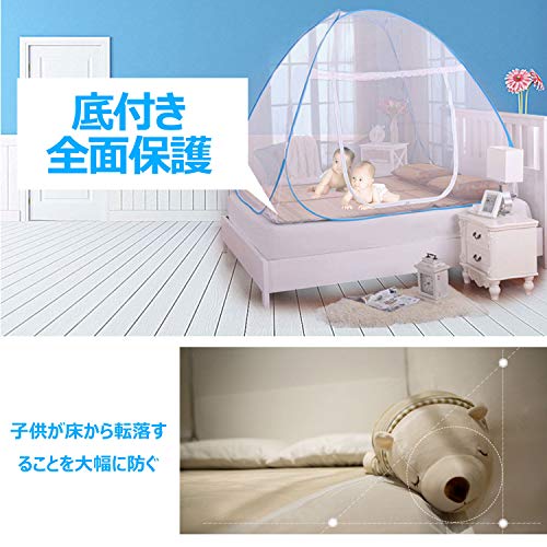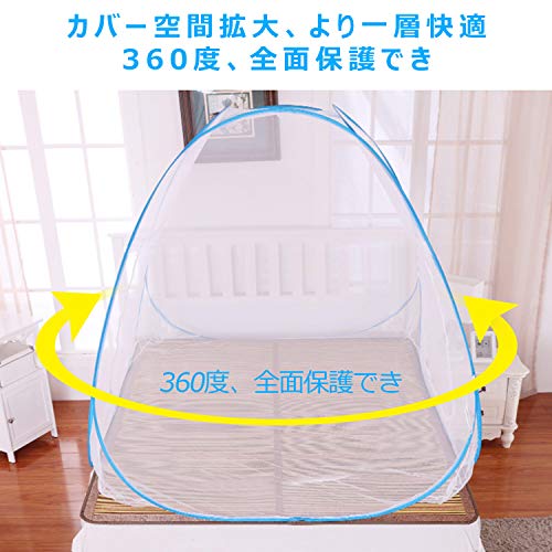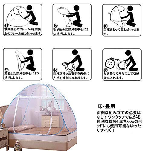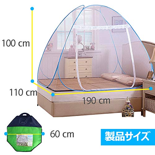 - ★【【ワンタッチ式】★:伝統的な蚊帳革命!ワンタッチ式のデザイン、収納袋から取り出すと、蚊帳は自動的に開け、数秒のうちに、蚊帳がテントのように変身!畳、床、ベッドなどのところにすぐ装着でき、利用できます。