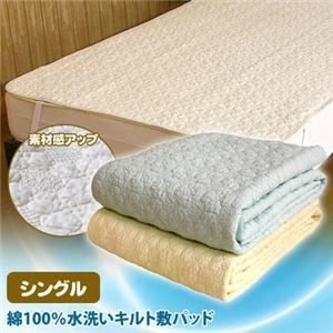 ●本商品はお取り寄せ商品のため、稀にご注文入れ違い等により欠品・遅延となる場合がございます。●誠に恐れ入りますが、何卒ご了承ください。●また、以下の場合には追加送料がかかる場合がございます。●・沖縄、離島および一部地域への配送時●・同梱区分が異なる商品の複数購入時●【出荷目安】:3 - 6営業日 ※土日・祝除く●【同梱区分】:TS 1●【梱包サイズ】:通常商品●■天然素材の綿100%。●水洗いキルトでサラサラ感UP!●天然素材の綿100%で吸水性バツグン!見た目からして清涼感のある上品なデザインのキルティングなのは、「水洗いキルト」という技法を採用しているからなんです。●「水洗いキルト」とは、製造段階で綿入りキルト加工をほどこした原反を水洗いし、生地を縮ませることで凹凸感とサラサラ感を出す加工のこと。●凹凸ができる丁寧なキルト刺繍は、肌への接触面が少ないためベタつかず、夏らしいサッパリ感を味わえるのがいいところ!綿本来の風合いが増し、肌に馴染むので、使い始めから心地良くご使用いただけますよ。●■洗えて清潔。●体にやさしい敷きパッドです●裏側には四隅ゴム付き...