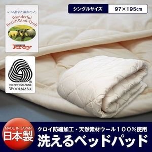 ●本商品はお取り寄せ商品のため、稀にご注文入れ違い等により欠品・遅延となる場合がございます。●誠に恐れ入りますが、何卒ご了承ください。●また、以下の場合には追加送料がかかる場合がございます。●・沖縄、離島および一部地域への配送時●・同梱区分が異なる商品の複数購入時●【出荷目安】:1 - 11営業日 ※土日・祝除く●【同梱区分】:TS 1169●【梱包サイズ】:通常商品●クロイ防縮加工・天然素材ウール100%使用●世界が認めた高品質の証、ウールマーク付き●天然素材ウール100%使用!●ご家庭での丸洗いが可能ですので清潔にお使いいただけます。●またベッドパッドがスッポリ収まる洗濯ネット付
