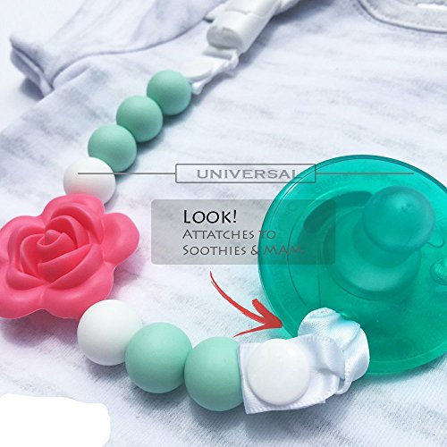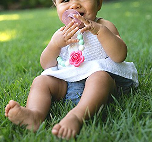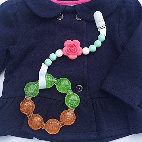 ベビー シリコーン 無毒 落ち止める 歯軋りチェーン おしゃぶりなだめるチェーン 安全バックル付き (赤)