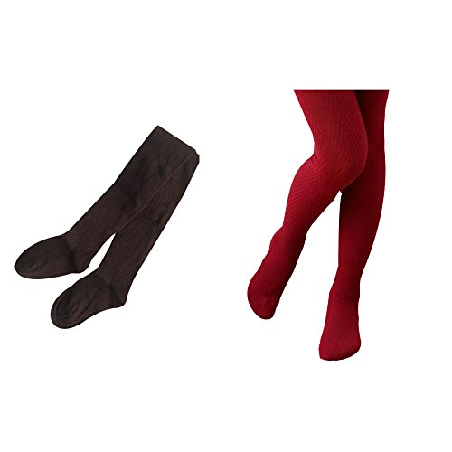 【POLKA】ポルカ ベビー & キッズ V字編み カラー タイツ 2色セット (5パターン全10色) (105(98~108㎝), ブラウン&ボルドー)