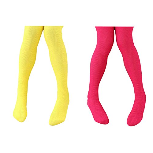 【POLKA】ポルカ ベビー & キッズ V字編み カラー タイツ 2色セット (5パターン全10色) (105(98~108㎝), イエロー&ピンク)