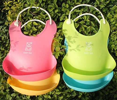 ベビー 食事 立体  防水  シリコーン エプロン 赤ちゃん ご飯の兜 4色 ピンク 青 緑 黄色 (ピンク)