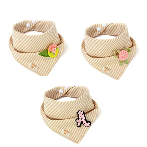 ベビー コットン スカーフ風 3枚セット 調節可能 可愛い 両面のスナップビブ スタイ バンダナ お食事エプロン よだれカバー 三角形タオル 唾液タオル (縞)