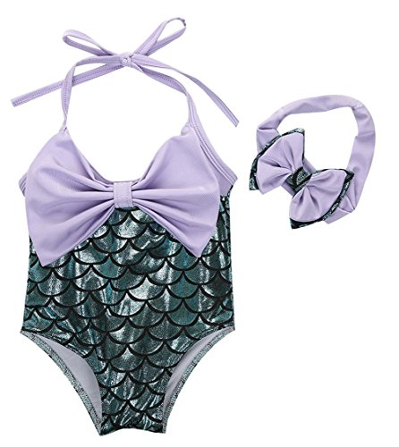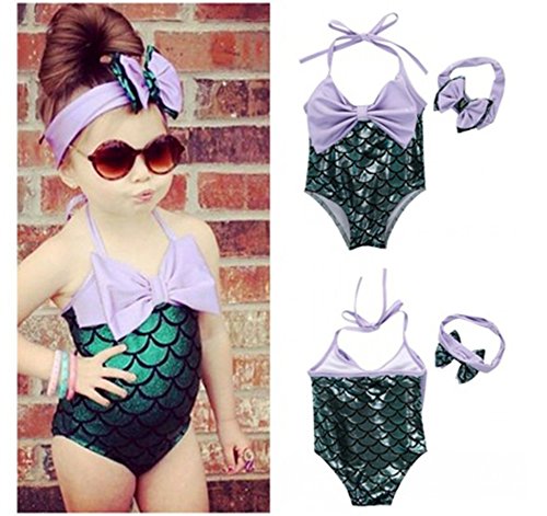 女の赤ちゃん 泳げる姫 人魚のような水着ビキニと鉢巻 (3T)