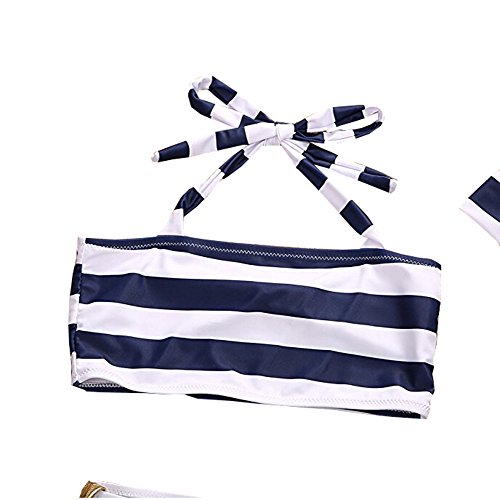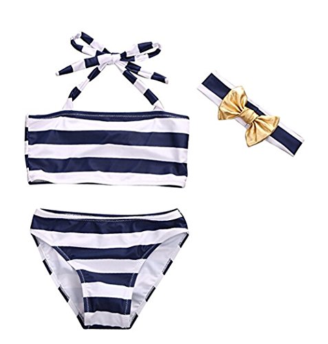 ベビー ビキニ リボンバンダナ 上着 純ブルー ストライプ 2種類 3点 セット 女の子 水着 可愛い (100, ストライプ)
