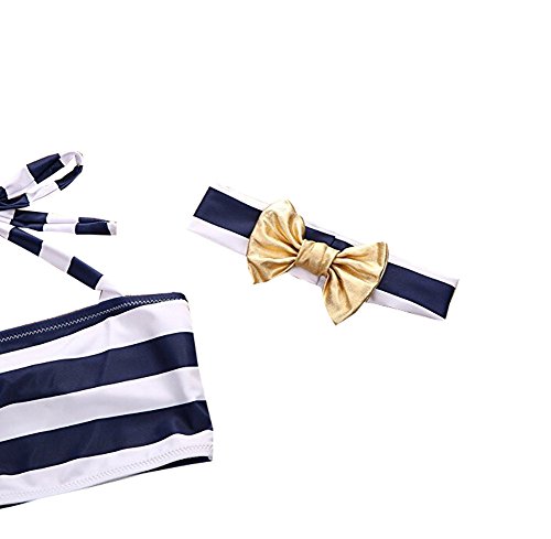 - 蝶結びのヘッドバンド、ストライプ パンツ のビギニ セット 純ブルーとストライプ の上着、お客様の赤ちゃんはどちらがスクですか。