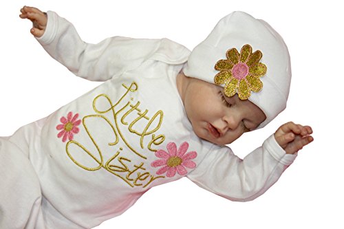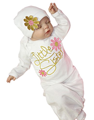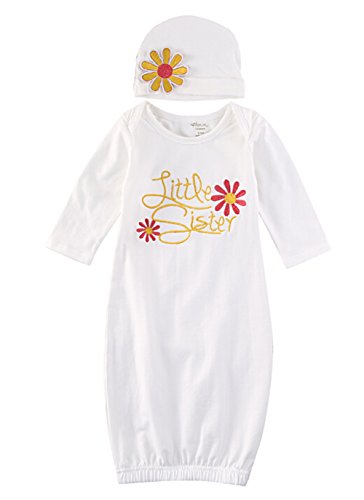 可愛い ベビー 女の子 花 little sister ロンパース ネグリジェ 帽子 二点 セット (0-3月, ピンク )