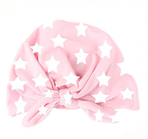 星の印 可愛い 赤ちゃんの用品 ウサギの耳を結ぶ帽子 子供の帽子 (ピンク)