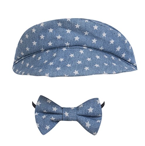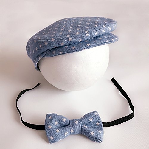 秋 春 冬 ベビーの 新生児 赤ちゃん 可愛い帽子 ビーニーキャップとハット ボウタイの服装セット (ブルー)