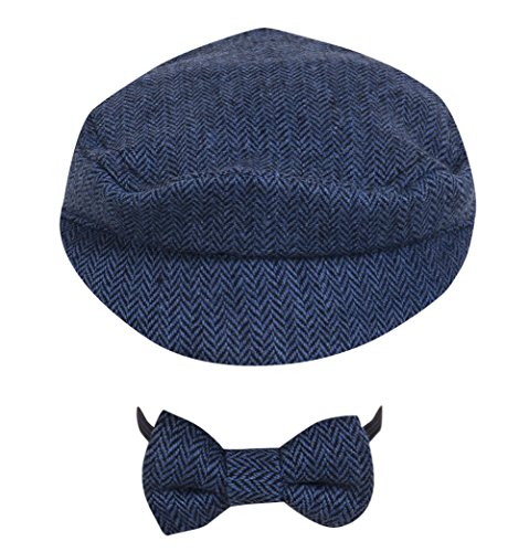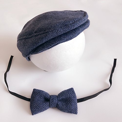 秋 春 冬 ベビーの 新生児 赤ちゃん 可愛い帽子 ビーニーキャップとハット ボウタイの服装セット (濃紺色)