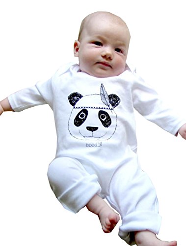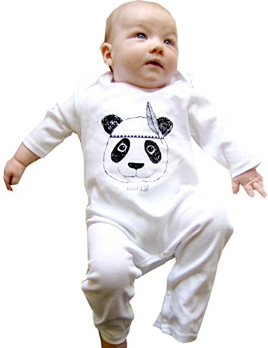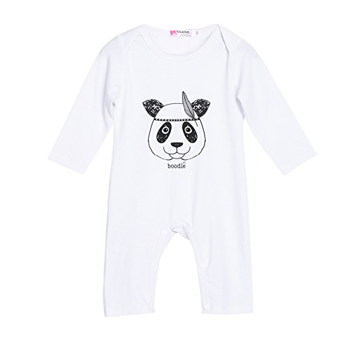 かわいい幼児のコットン 長袖 ロンパース パンダの ブリント 綿の服 ジャンプスーツ (90, 白)