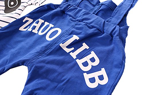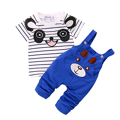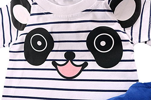 ベビー パンダ プリント Tシャツ つりズボン セット 可愛い ファッション 快適 (90, ブルー)