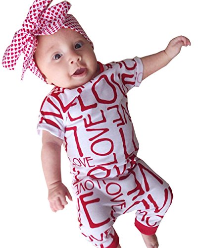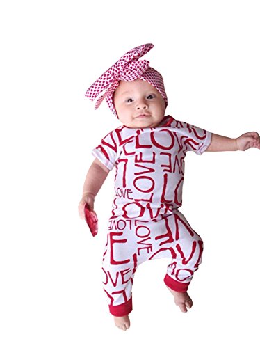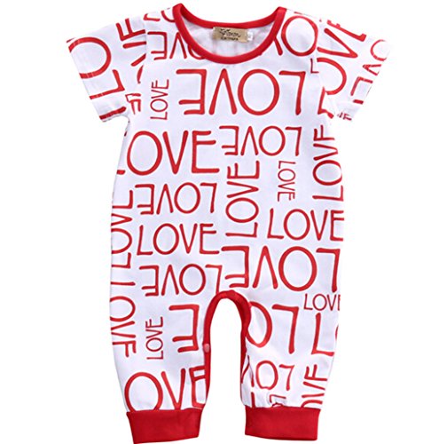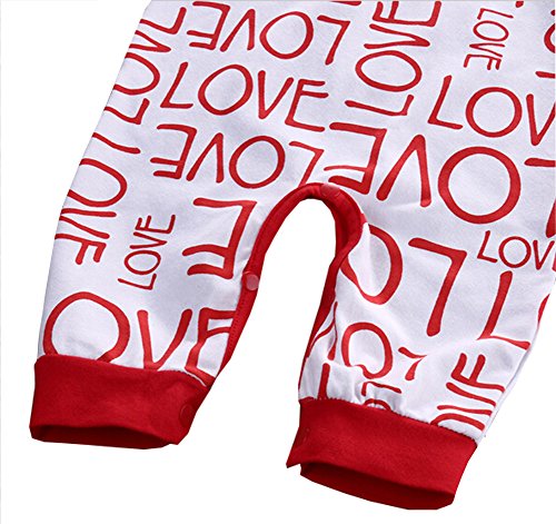 ベビー コットン love ロンパース 可愛い ファッション ソフト (90, 白)