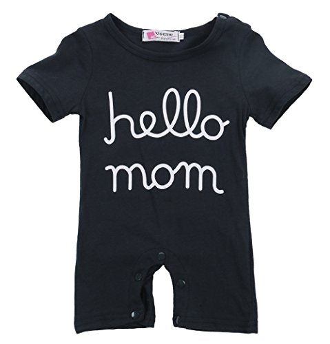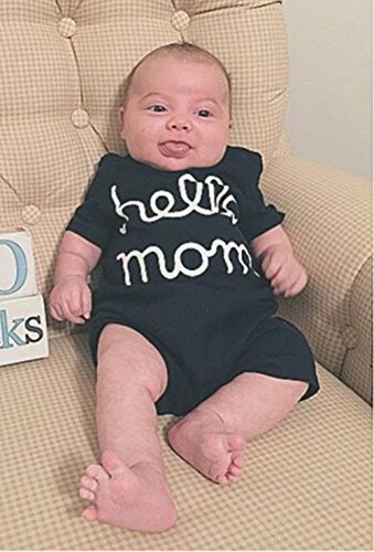 ベビー 男の子 女の子 hello プリント ロンパース コットン 灰 ノースリーブ 紺 半袖 ファション 可愛い 大人気 (0-6月, 紺)