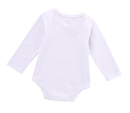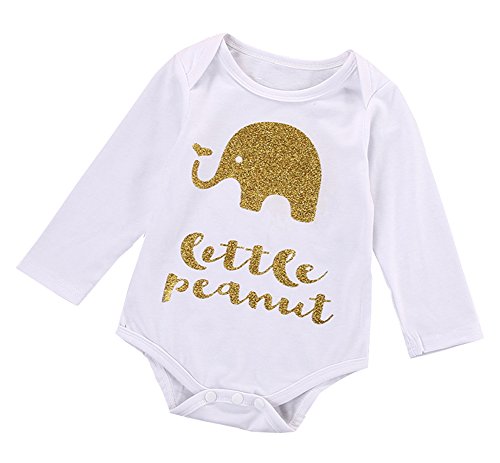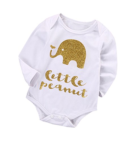 可愛い 男児 女児 象 プリント ロンパース 長袖 綿 新生児 服 白 ピンク  (6-12月, 白)