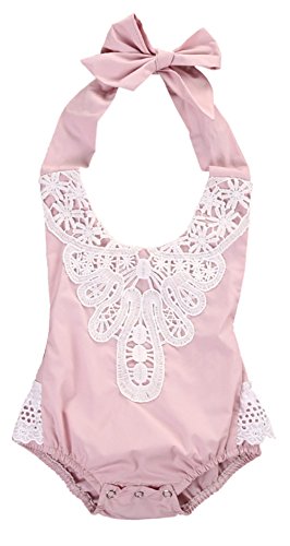赤ちゃん ロンパース 女の子 夏 春 コットンノースリーブロンパース 幼児ジャンプスーツ 4色 (6-9月, 淺粉)