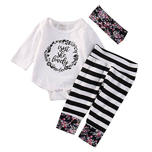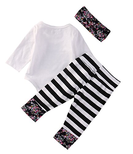 ベビー 女の子 oh deer i'm here プリント ロンパース 鹿 レギンス パンツ コットン 帽子三点セット ファッション 色 (6-12月, 画像色)