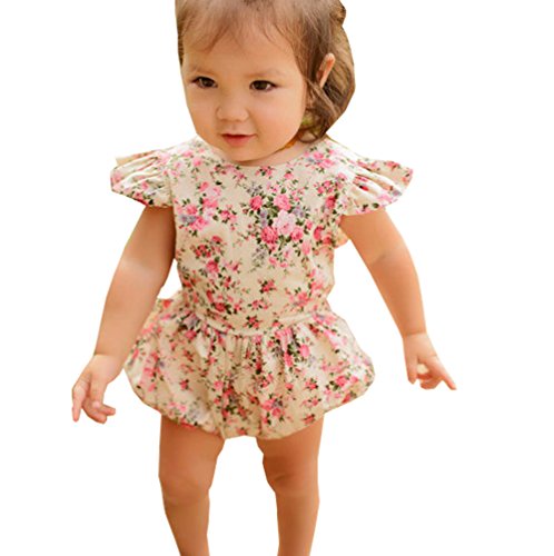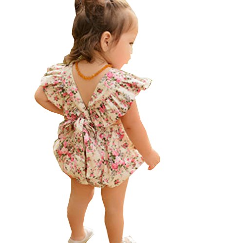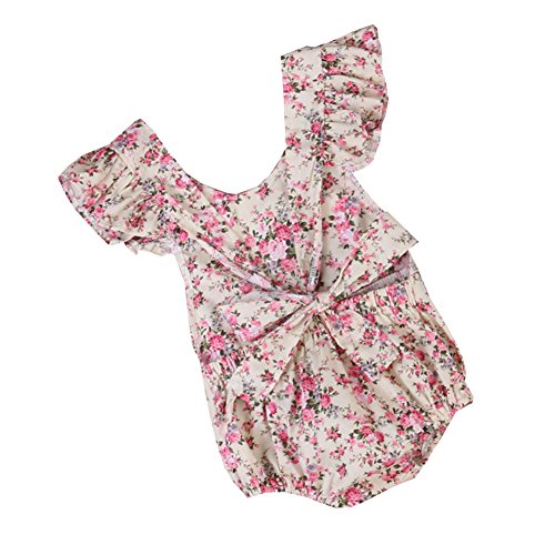 可愛い ベビー 女の子 花柄 プリント ロンパース 帯 快適 ファション 人気 精巧 (0-3月, 花柄)