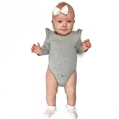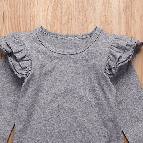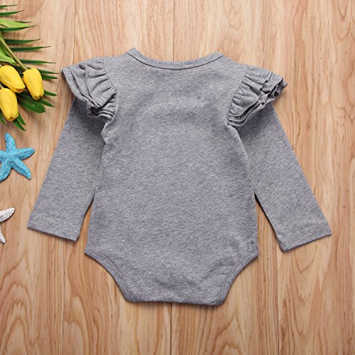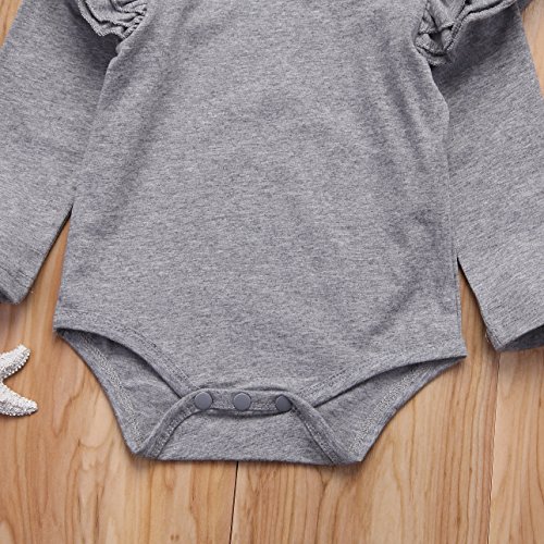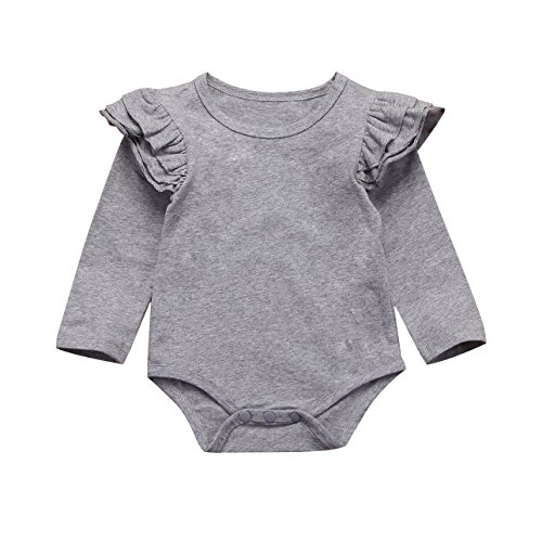 ベビー ガールズ ボーイズ ベーシック服 フリル ロングスリーブ コットン ロンパース ボディスーツ トップス (80/3-9ヶ月, グレー)