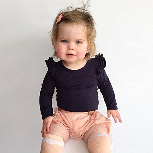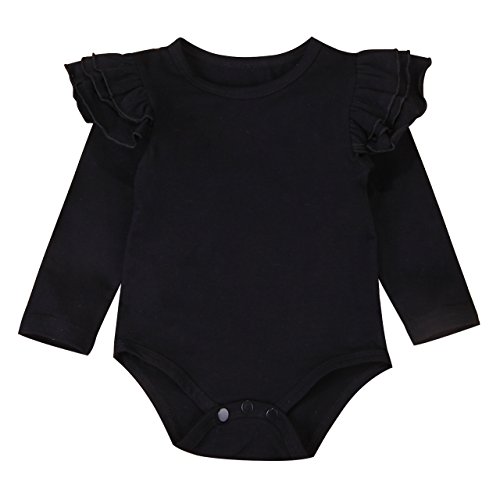 ベビー ガールズ ボーイズ ベーシック服 フリル ロングスリーブ コットン ロンパース ボディスーツ トップス (80/3-9ヶ月, ブラック)