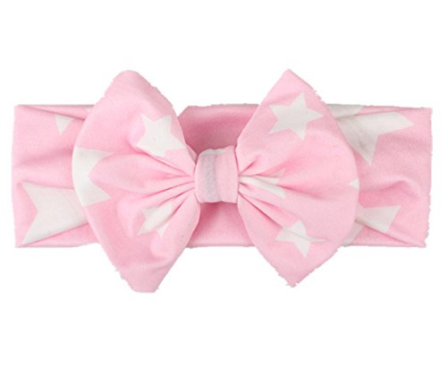 女の赤ちゃんの蝶結びと星の印付きのストレッチヘッドバンドヘッドラップクリップホープス (ピンク)