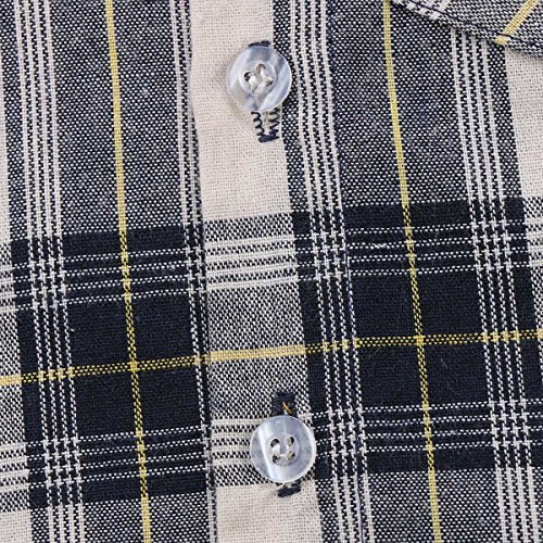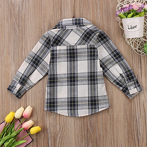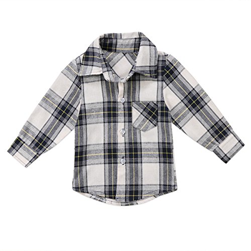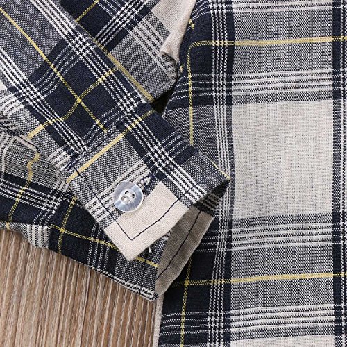 ベビー ボーイズ ガールズ 可愛い ボタンダウンシャツ 迷彩 チェック柄 ロングスリーブ ワイシャツ トップス (ネイビーブルー+ホワイト, 90cm)