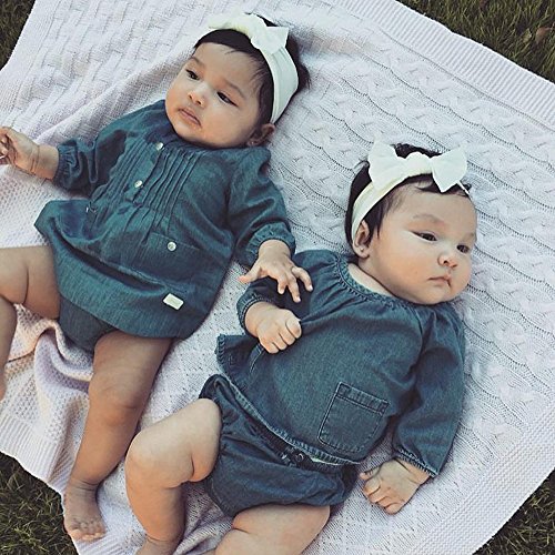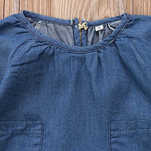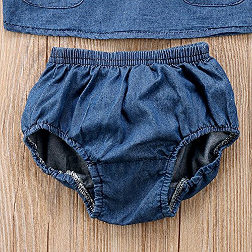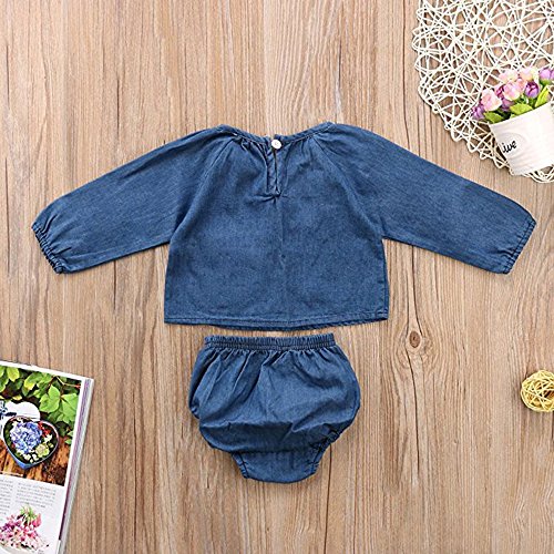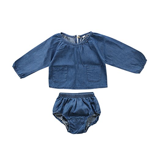 幼児 赤ちゃん 女の子 男の子 インナー服 ロングスリーブ デニムシャツ デニムドレス デニムショーツ 上下服セット ポケット付き (90cm(12ヶ月~18ヶ月), デニムシャツ)