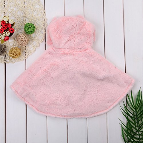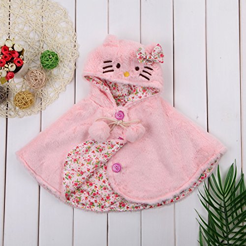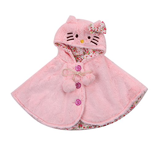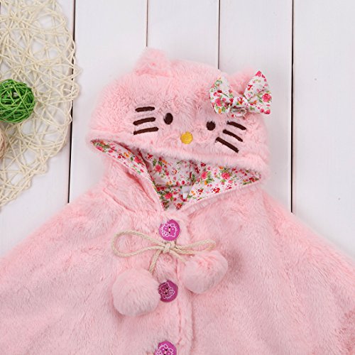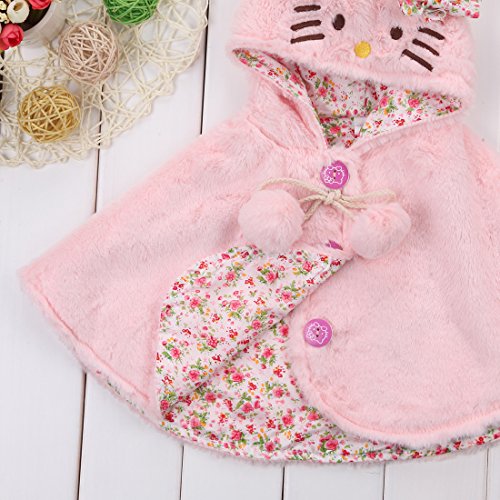 赤ちゃん 女の子 ポンチョコート 秋 冬 厚さ トレンチ毛皮 可愛い ハローキティの顔 フード付き ケープ (100cm/18ヶ月~24ヶ月, ピンク)
