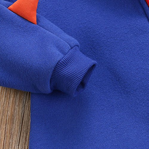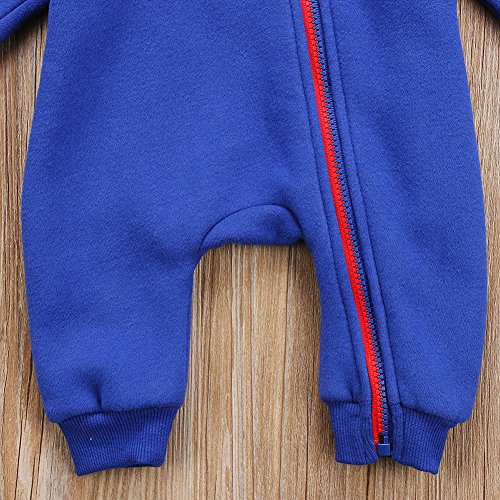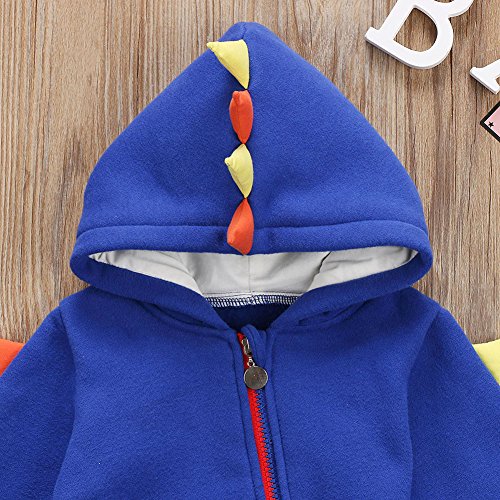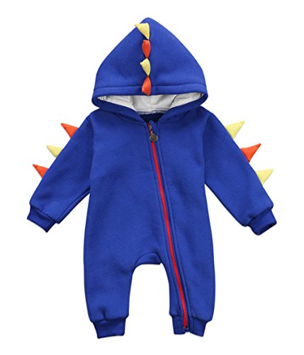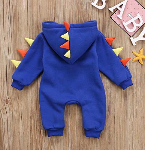新生児の少年少女 ロングスリーブ 漫画 パーカーセット ロンパース 恐竜 ジャンプスーツ服 (ブルー, 70cm)