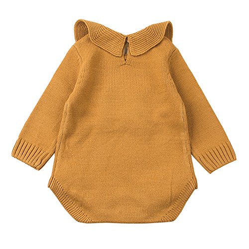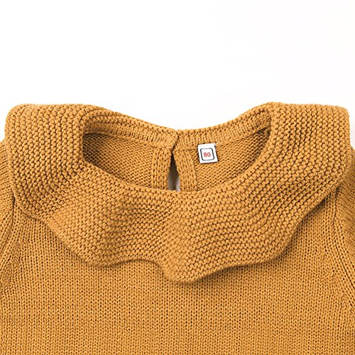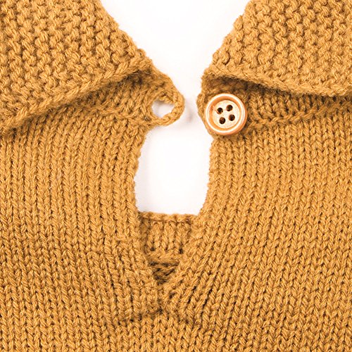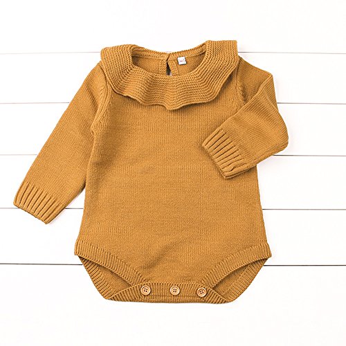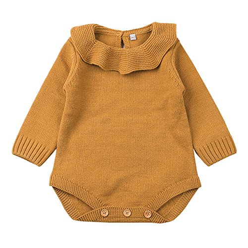 新生児 女の子 プリンセス ニット セーター ロンパース ジャンプスーツ ラッフル 長袖 洋服 (70cm/0~6ヶ月, ブラウン)
