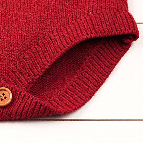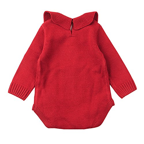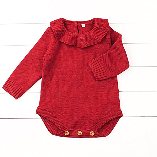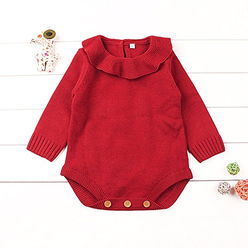 新生児 女の子 プリンセス ニット セーター ロンパース ジャンプスーツ ラッフル 長袖 洋服 (70cm/0~6ヶ月, レッド)