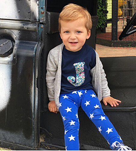 ベビー 男の子 女の子 五角星形 プリント ロング コットン ズボン 高品質 ファション 3色 灰 青 赤 (80, 青 )