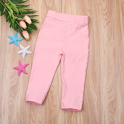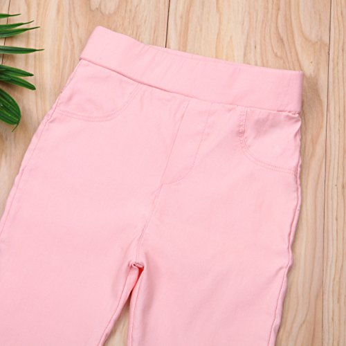 キッズ 赤ちゃん ガールズ ボーイズ キャンディーカラー ベーシックパンツ ストレッチ レギンス ロングパンツ (110/4-5歳, ピンク)