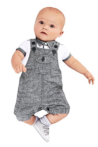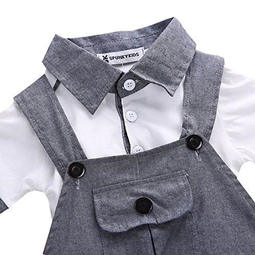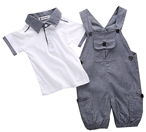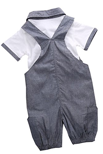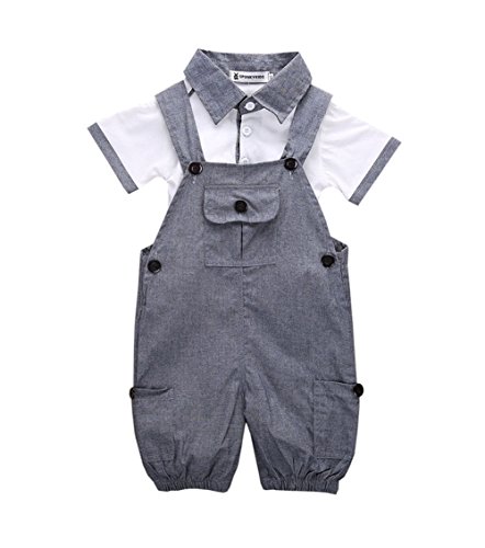ベビー 男児 超可愛い 半袖Tシャツ つりパンツ 二点 セット 紳士 りつ短ズボン  ファション 灰 (19-24月, 灰)