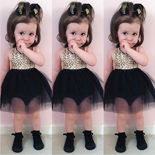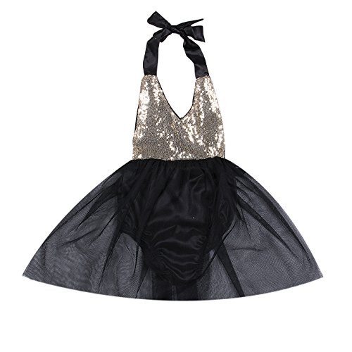 ベビー 幼児 女の子 ノースリーブ ワンピース スパンコール 糸網 スカート ボンボンスカート 可愛い ファション (0-6月, 黒)