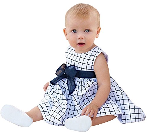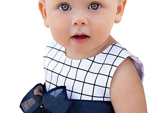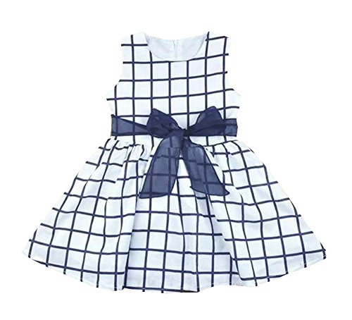 ベビー 女児 格子 ワンピース 可愛い ノースリーブ プリンセス 蝶結び ワンピース (12-18月, 格子)