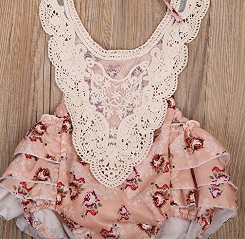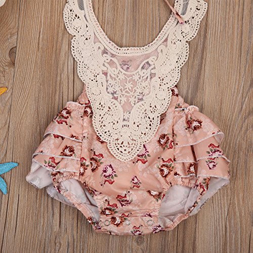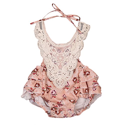 夏 可愛い 赤ちゃん 露背係 レース sunsuit  新生児 女の子 ワンピース ロンパース (12-18月, オレンジ)