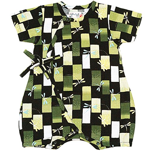 【本体綿100%】夏物 くろわっさんすべべ トンボ柄 甚平グレコ 和柄 グリーン◇50-60cm
