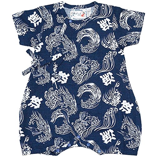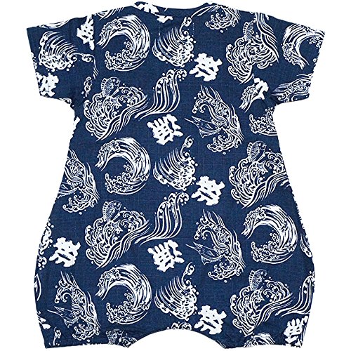 【本体綿100%】夏物 くろわっさんすべべ 海柄 甚平グレコ 和柄 ネイビー◇50-60cm