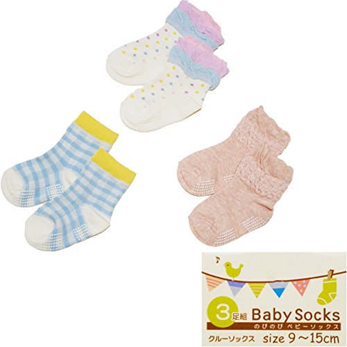 【3足セット】女児 クルーソックス【チェック・カラフルドット】 チェック-カラフルドット◇9-15cm