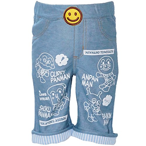 2017年 夏物 アンパンマン ニットデニム 線描きプリント 7分丈パンツ Anpanman サックス◇90cm