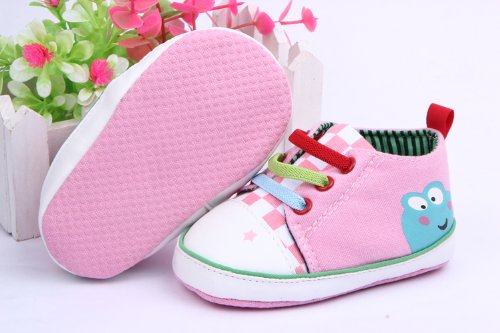 Yuelian ベビーシューズ カエル図案 キッズスニーカー (12CM, ピンク)
