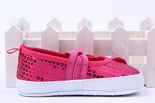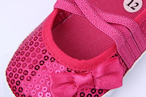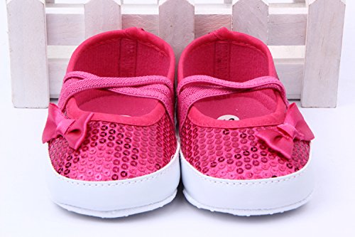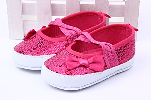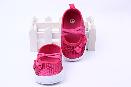 Yuelian 蝶結びベビーシューズ スパンコール付け 女の子シューズ (13CM, レッド)