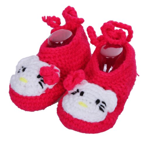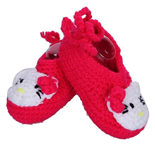 Yuelian 手編みニットソックス 猫図案付け ベビーシューズ (ももいろ)